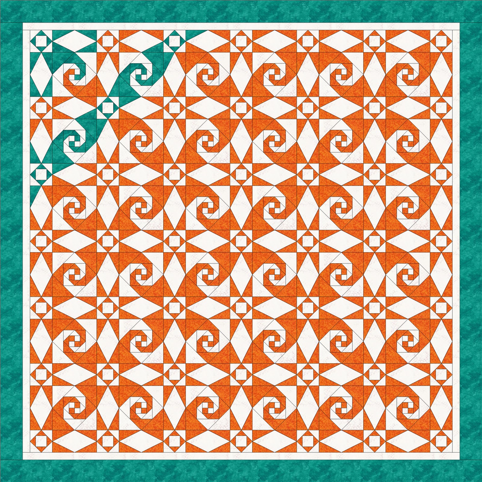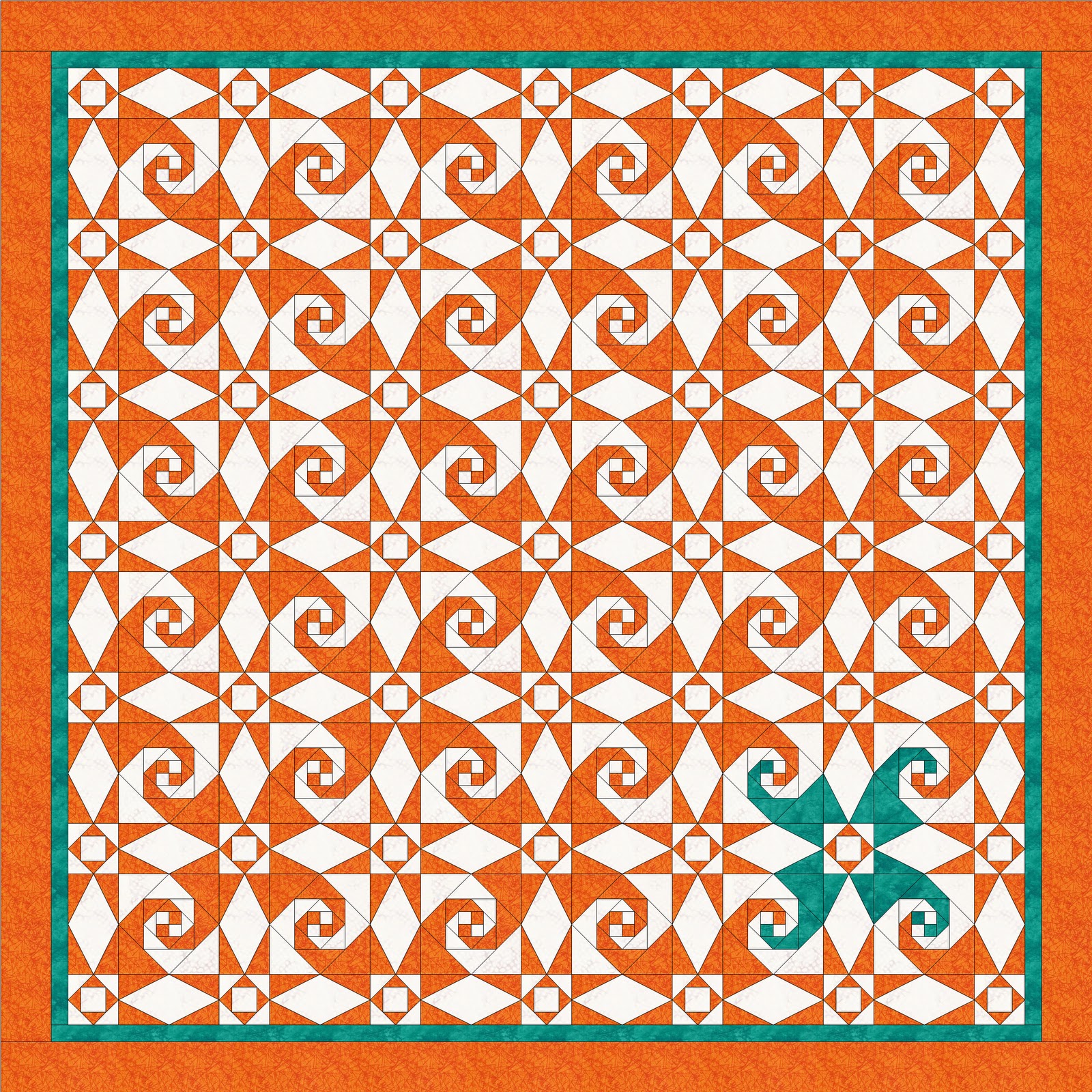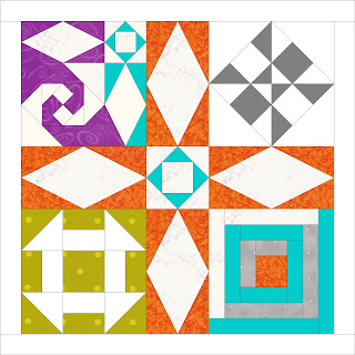 I love the orange snails trail with the one turquoise block. I would love to get the block patterns. Thanks.