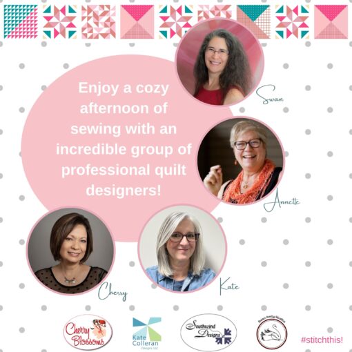 Featuring Annette Ornelas of Southwind Designs, Cherry Guidry of Cherry Blossoms Quilts, Kate Colleran of Kate Colleran Designs, and Swan Sheridan of Swan Amity Studios.